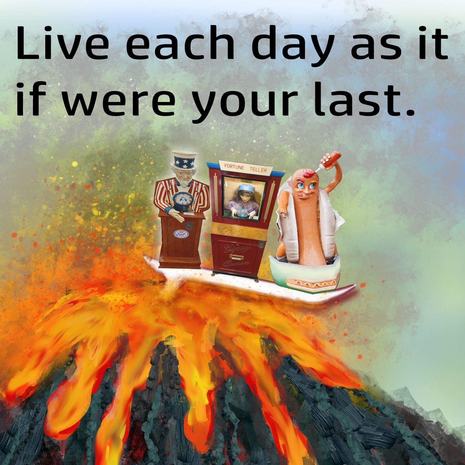 Funny adrenaline junkie card for and thrill seekers living on the edge and each day as if there might not be another one. Perfect card for friend or relative who is always travelling or doing out there things in exotic or dangerous places! Or for a surfer looking to catch the most risky of waves.